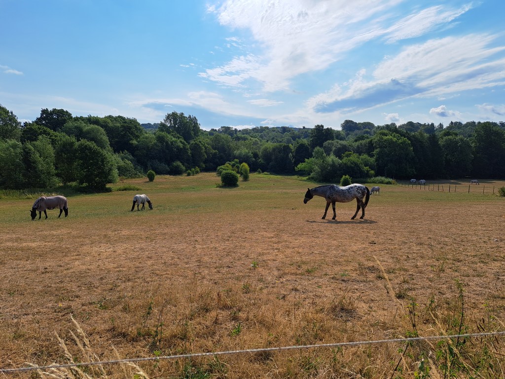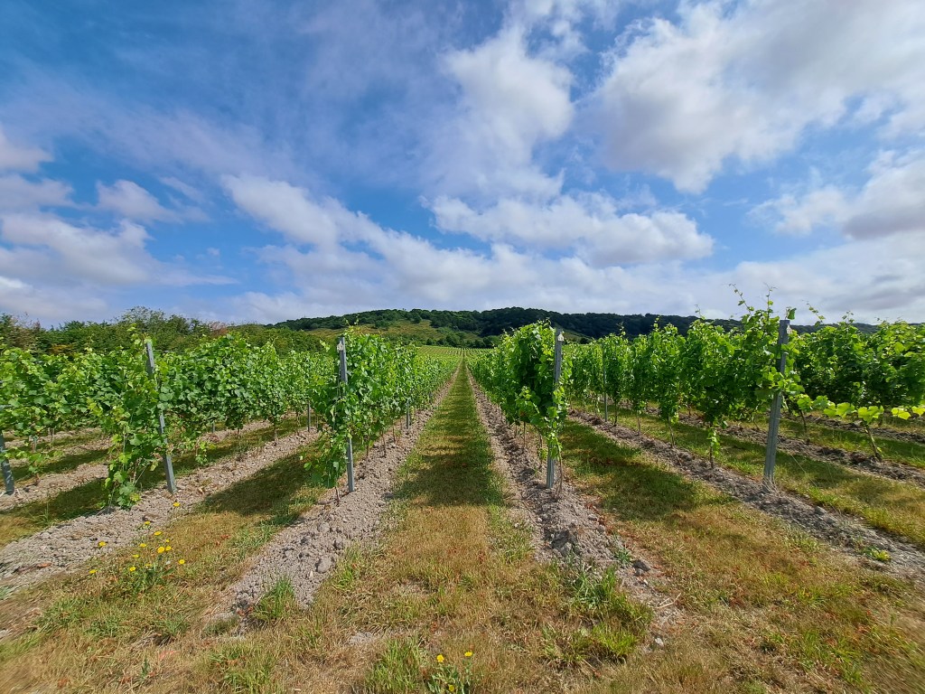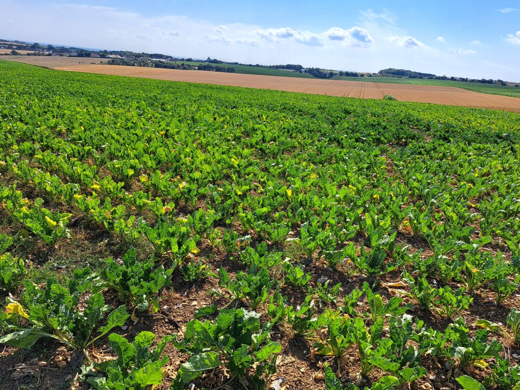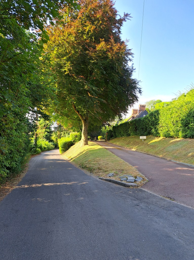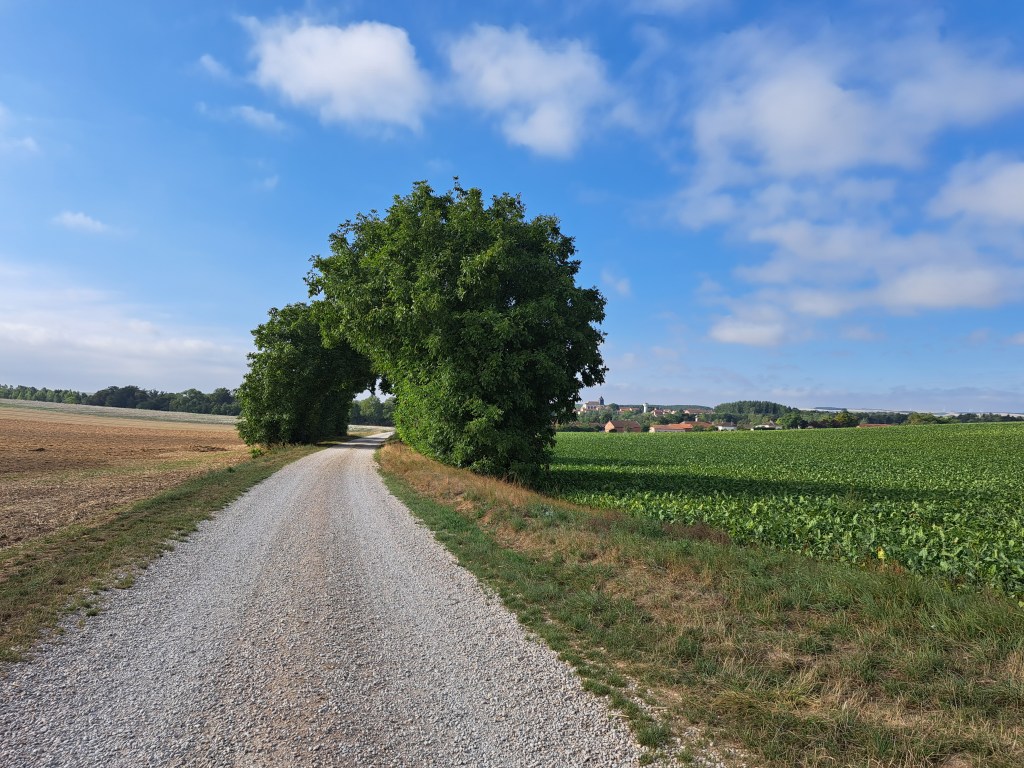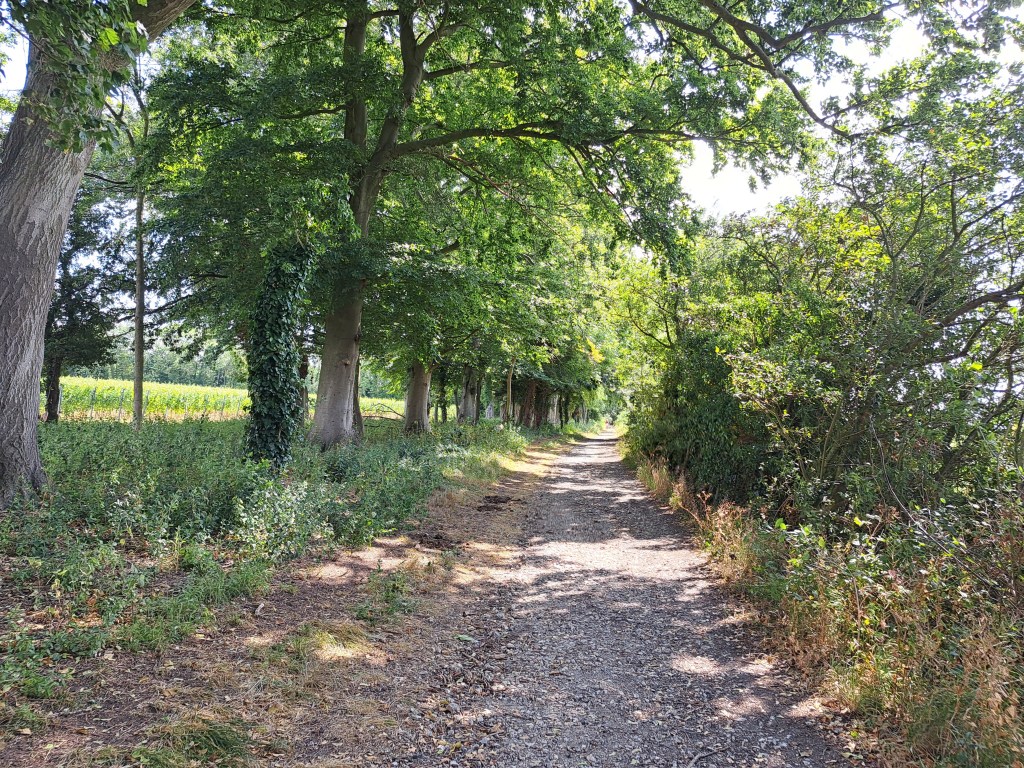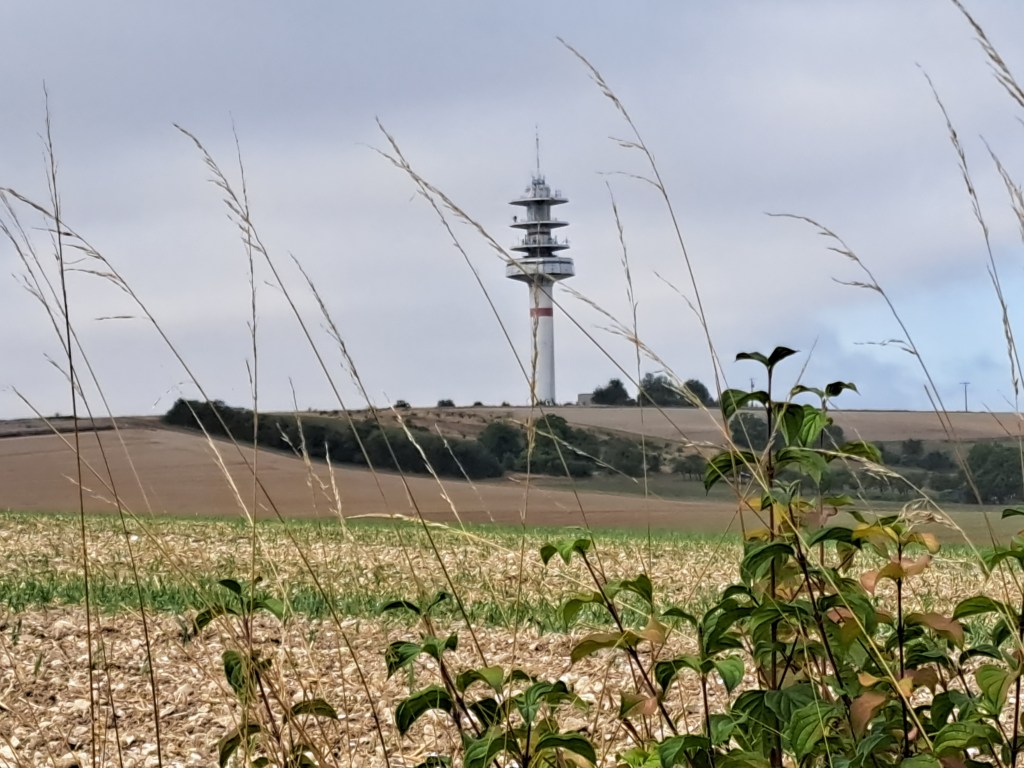 After long stages in forests and a few bouts beside large cultivated fields we found ourselves on the edge of an escarpment with great views along the valley below. So good to have a broader view of the world after hours enclosed in forests. I love forests and find them peaceful and quite mysterious, but the stepping out to a wider vista was very satisfying. I suppose the fact that I had been suffering from the very course and uneven paths liberally strewn with flint nodules and sharp, broken shards, helped make the break out feel so good.