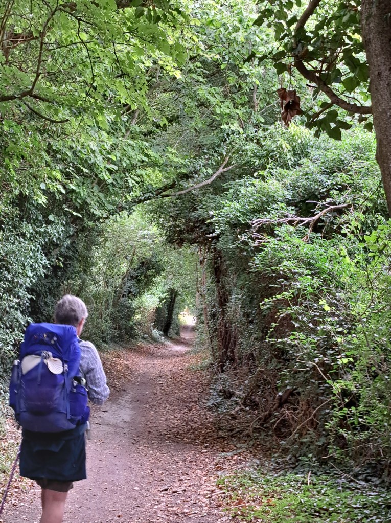 Then, after joining the Way from Winchester, we bumped into a trio of American pilgrims who added another level to the journey. Ironically, before this encounter, it was another pilgrim who appeared ahead of us on our way that had given us the first frisson that we were really in pilgrim territory. This lovely man walking our way turned out to be a man who hails from Cambridge and was walking the Way as part of his period of discernment after retiring and before committing to training to become an Anglican priest.