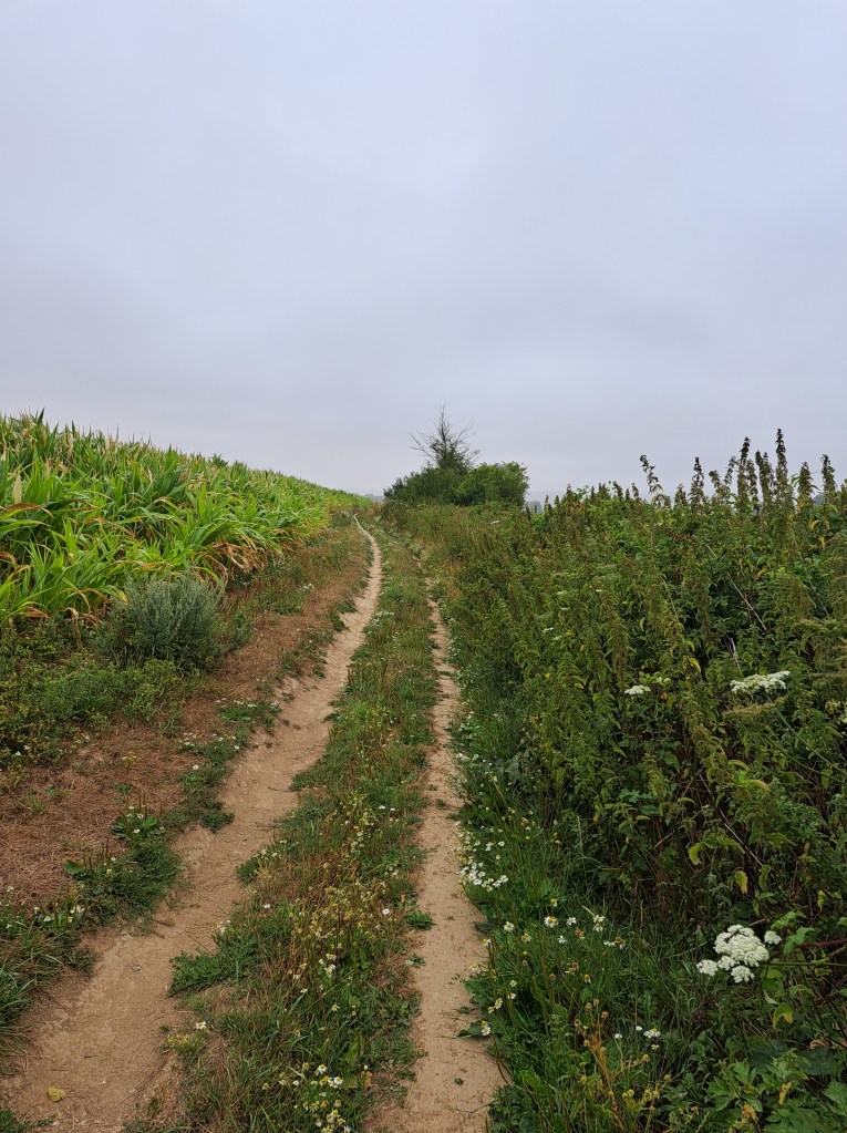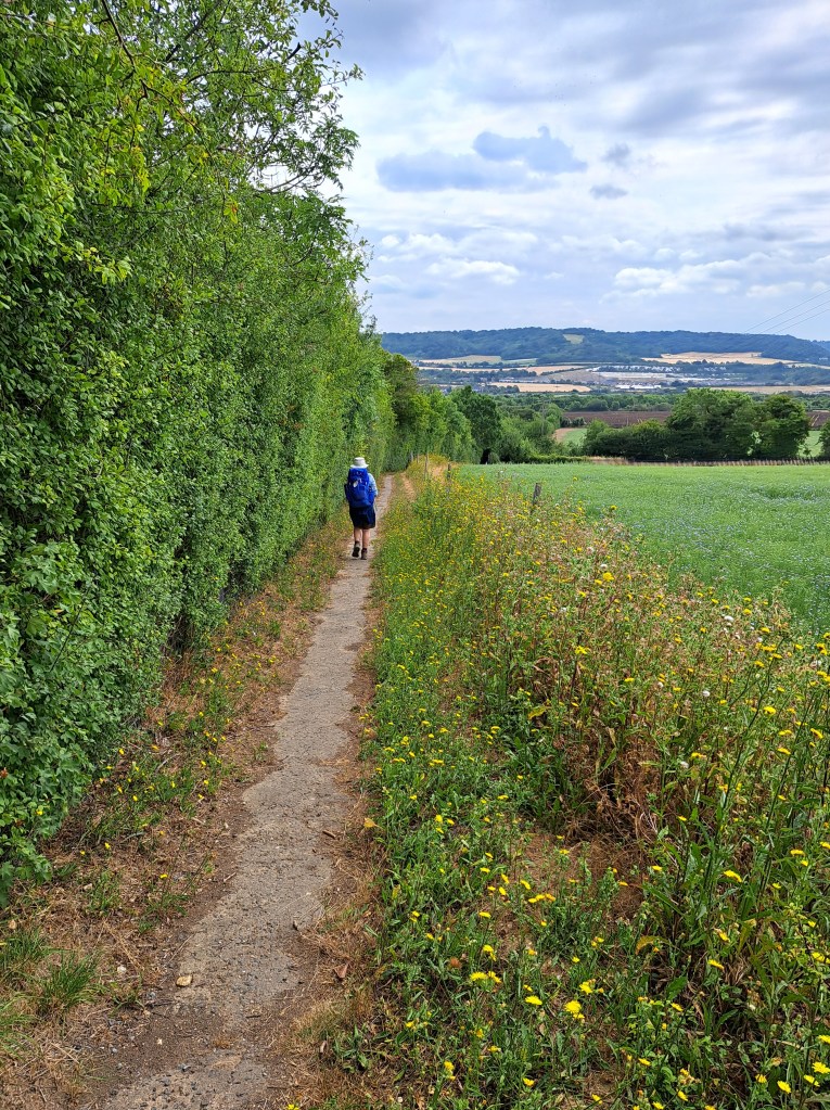 Before Alison’s accident, I felt like we were building up our momentum. We were getting into a daily rhythm and the walking was getting easier. I wondered if the day of queueing and waiting would break this developing pattern and I am glad to say it has not. It has not been easy for Alison – she reacted badly to the antibiotics and we became ever more mindful of our movements through the narrow and unruly paths across the Downs. But these have helped us focus more on how we are making this journey together.