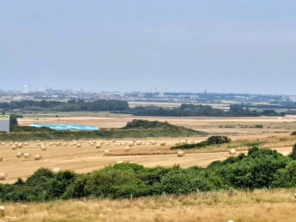 So, we stayed the night in Calais then walked out across the town and onto the shore. We watched the ferries come and go as we walked along the sea front, then we moved in land to avoid both walking on loose sand (with heavy packs on) and walking over ancient dunes that are marked as the route but did not look like they were yet properly protected from erosion…