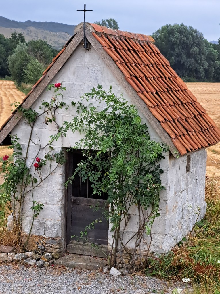 On other routes in France we have stayed in a variety of different versions of the same thing. Either the parish, a group of local Amis or the Mairie will find a room, or a small cottage or something similar. Often, as well as the facilities above, the community will either have a cupboard with basic cooking ingredients and even some wine, and will ask the pilgrims to pay the rate suggested using an honesty box. Sometimes the cupboard is locked and the volunteer host will open it and sell you what you want. Either way you don’t have to keep carrying food and drink for the evening (like we’ve been doing) and you don’t have to worry about the total lack of shops and other facilities as you walk through the French countryside.