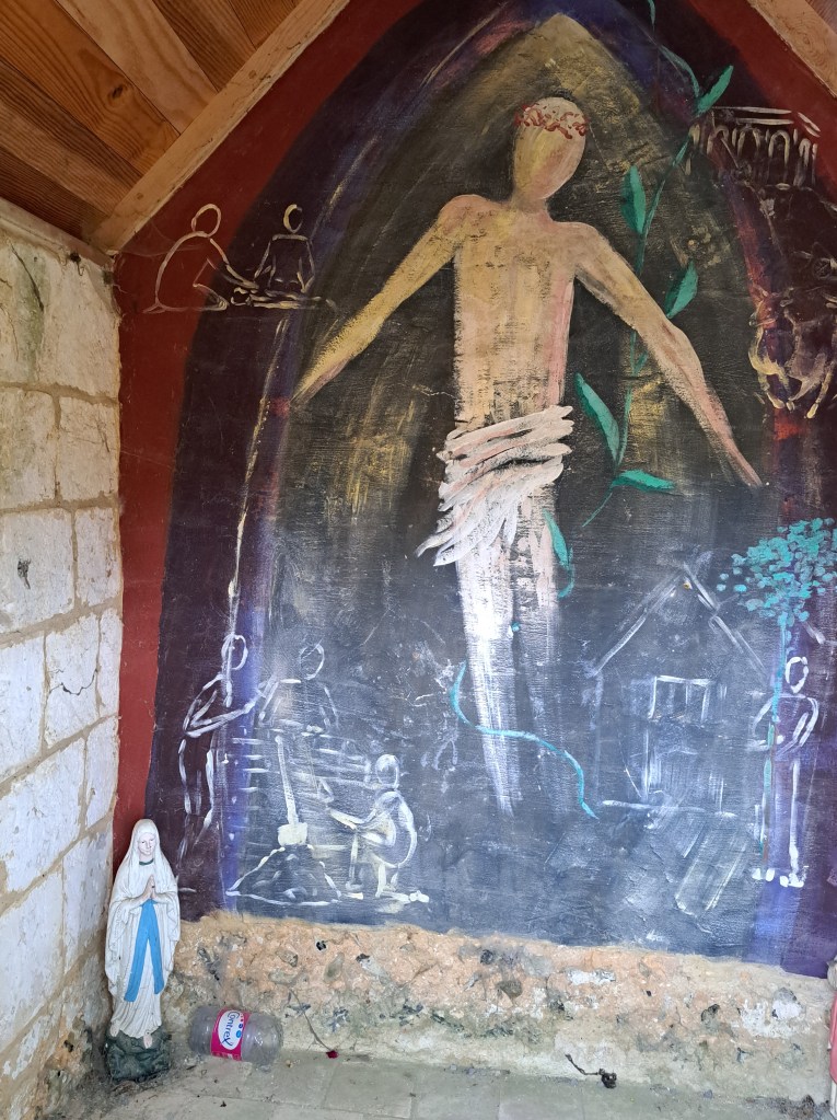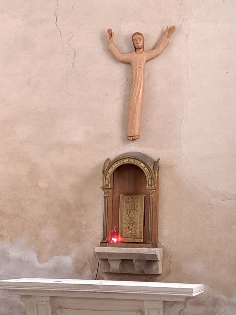 After encountering and walking with the Americans (Matthew, Ruth and Sarah) we left them to stride on ahead as we continued, then we met up with the other pilgrim, Chris, as we entered a little church. He waved us in and we entered a place filled with peace and joy.