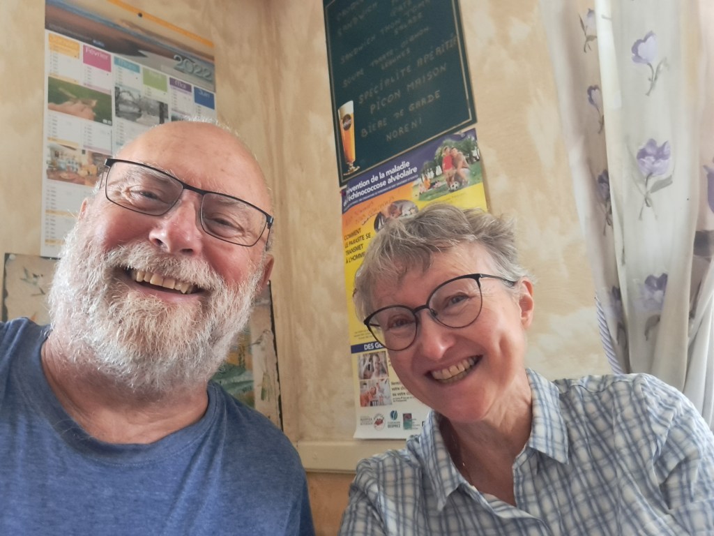 Didier and Sandrine, the lovely couple who were our hosts, locally sourced all of the food and drink they served, knew the farmers and butchers, brewers and cheesemakers, etc and made every effort to ensure everyone was really welcome and looked after. They were very keen to find out more about our pilgrimage and were excited by the prospect of having more pilgrims coming their way (we were both the first pilgrims and, as we paid by card, we were their first card paying customers so we had to let Didier get it going before we paid). Didier is also working hard at learning English, something he realised he needed to do once they opened their doors, and he was impressive for someone who had started so recently (well, he was actually very good and was picking up new words as we spoke).