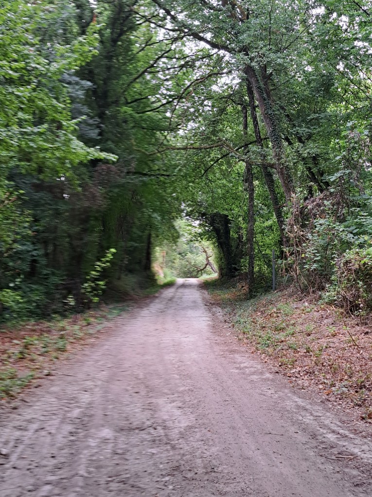 We walked from a small village where we stayed in a Chambres d’Hotes in a small farm on the edge of a village. The woman running it was lovely. We had tried communicating with her but her emails were all very terse to the point where she typed BJR for bonjour. Originally she didn’t want us to arrive until six but was happy to welcome us after three because we were pilgrims on foot.