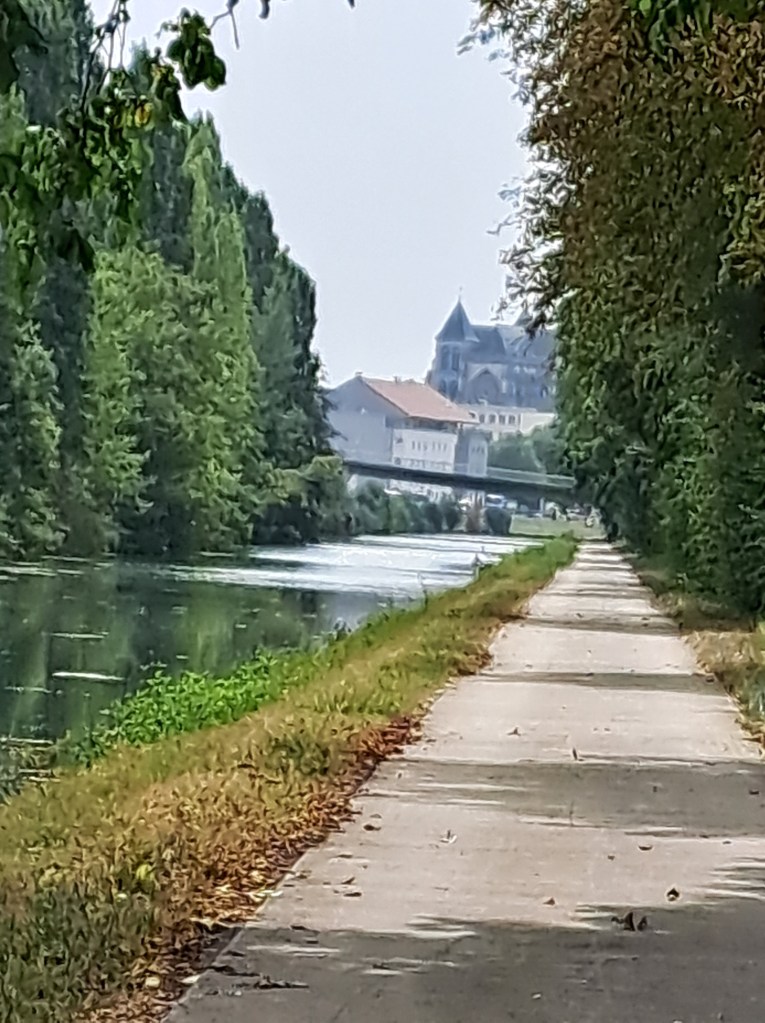 So as well as detouring to Beaumont sur Vesle to find somewhere to stay, we used the canal to keep us on track, etc. And, when we arrived on the outskirts of the city of Vitry the canal took us directly towards the centre of town and the GR skirted around the edge of the city, never getting near anywhere to stop, eat, drink or sleep. Oh, and the GR route was very narrow, overgrown and unpleasant to walk – we checked some of it out.