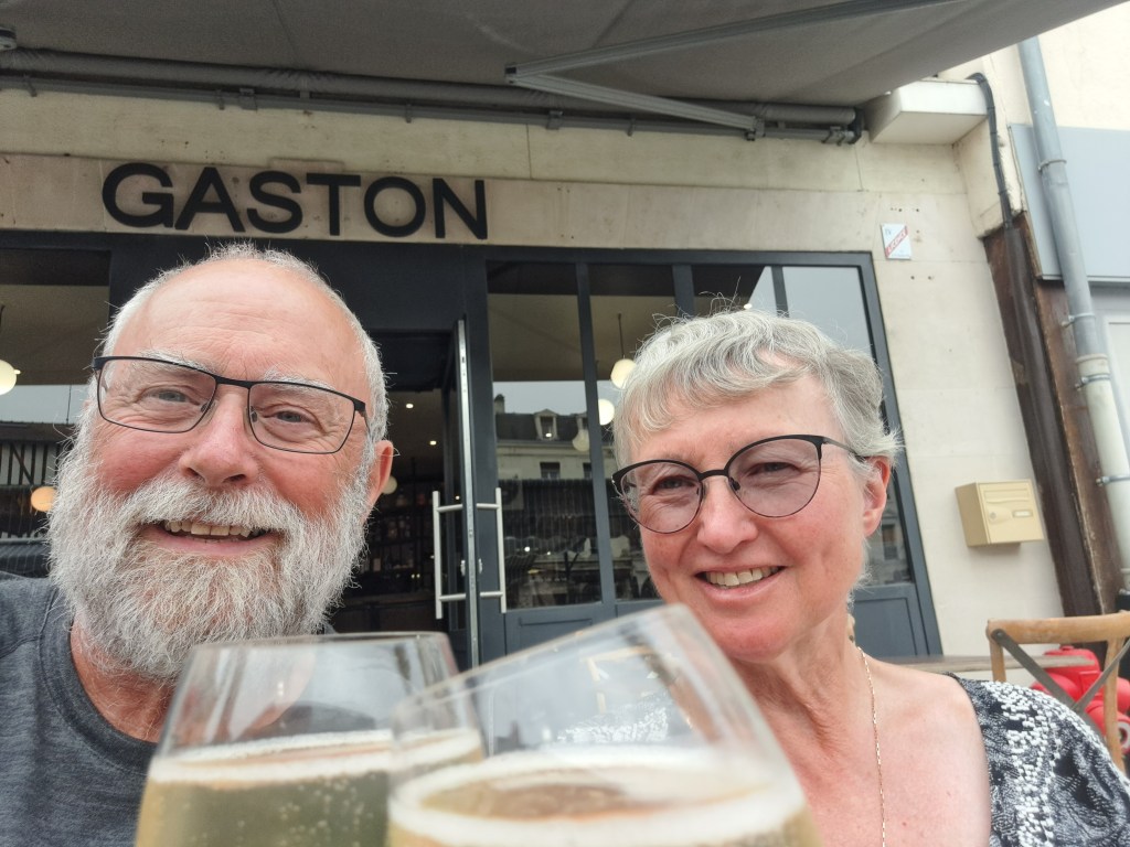 We left early today and walked into the town, which is famous for being the place where Henry the eighth had the over the top meeting with the King of France at the “field of the cloth of gold”. We managed a stop at a boulangerie (escargots and a baguette – escargots are large pains aux raisins), a stop at a fruit and veg place (two tomatoes and an apple) and a tabac (two black coffees and a sit down.