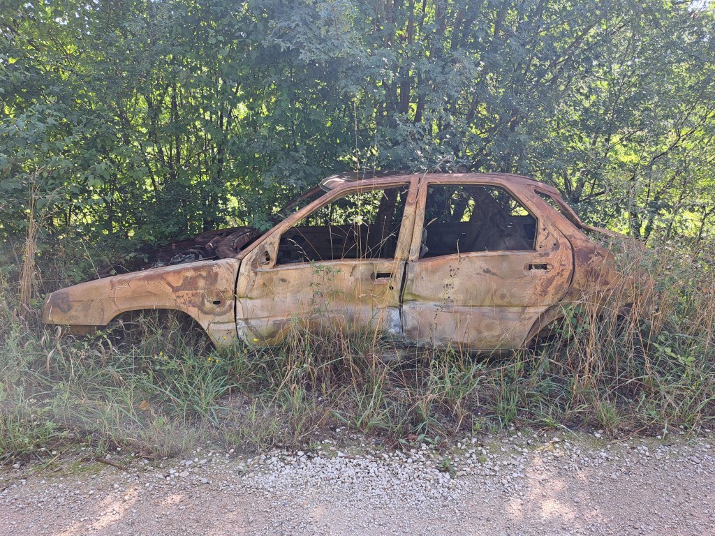 By 4.30 we were only about an hour from our destination but the heat was getting to us and our water was running low again. We knew that our host, Emmanuelle, had offered to pick us up from the pilgrim route as her place was a few miles off the path. We had opted to make our own way directly, hoping to walk the whole way but decided it prudent to take up the offer of a lift. So while Alison sat in the shade and tried to contact our host, I walked down to the church and filled up my bottle from the tap at the cemetery and we sat and refreshed ourselves as we waited for a lift.